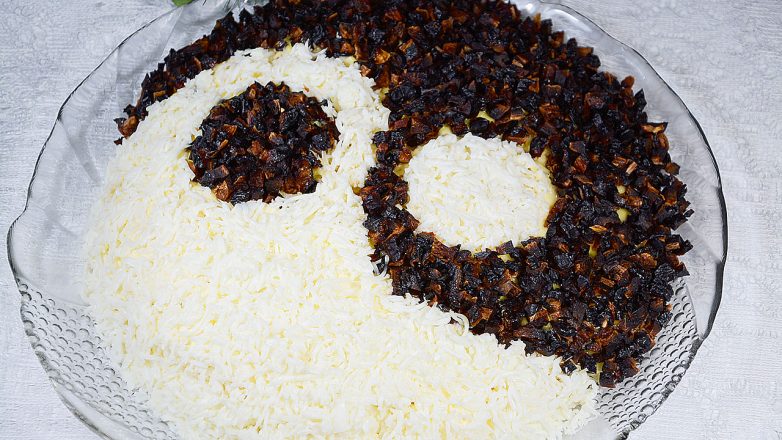 Удивите гостей салатом «Инь Янь» с курицей и сыром!