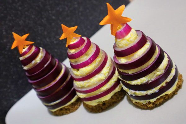 5) Из моркови вырезаю звездочку, одеваю на зубочистку и украшаю «елочку».