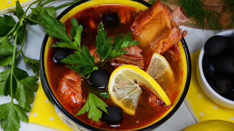 Сборная мясная солянка — это настоящая отрада для мясоедов. Чего только не входит в ее состав! Это и несколько сортов мяса, и копчености, и соленья. Очень удобно варить солянку после праздников, когда в холодильнике обязательно найдется кусочек копченого мяса, колбасы, ветчины или сосиски.Попробовав однажды этот суп, насыщенный мясной начинкой с копченым ароматом, вы влюбитесь в него раз и навсегда.