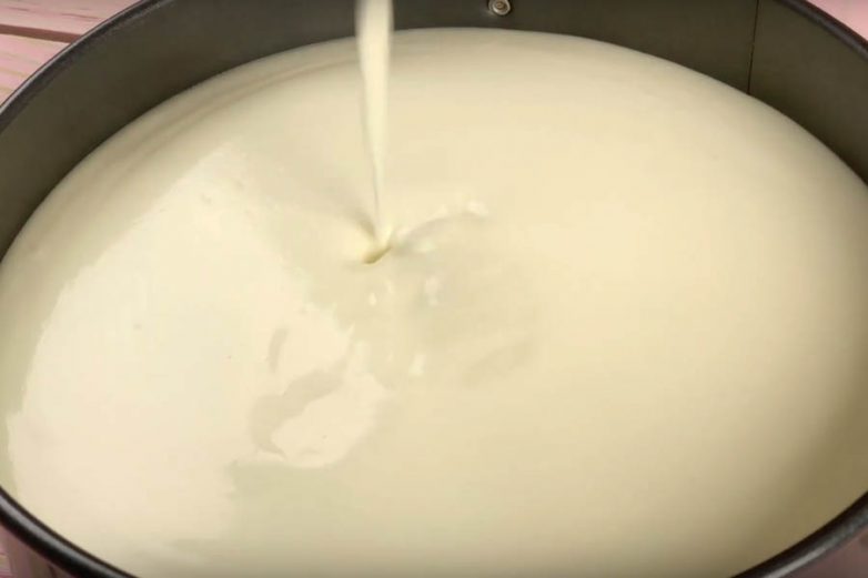 Выливаем все это дело в форму, даем остыть минут 15-20 накрываем пищевой пленкой и отправляем в холодильник на 12-24 часа.
