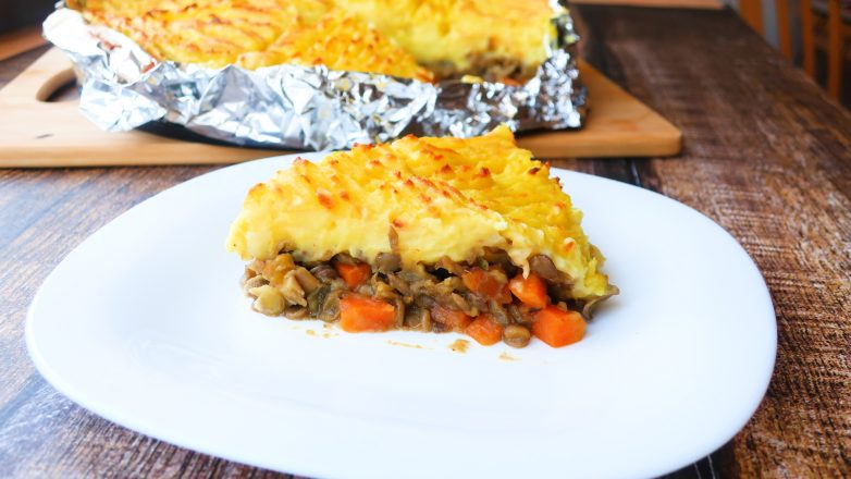 6. На дно формы выложить начинку, сверху слой картофельного пюре. Запечь в духовке при 180С 20 минут до золотистой корочки.