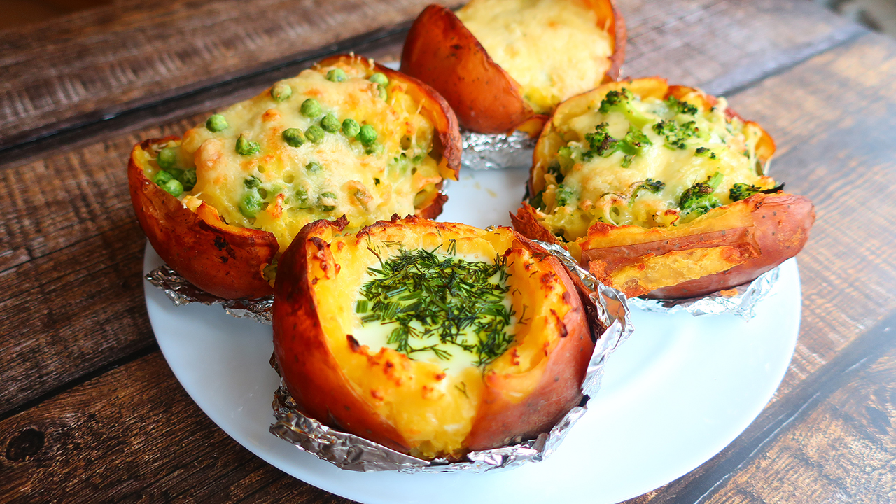 Очень вкусный обед/ужин для всей семьи! Запеченный картофель в духовке с разными начинками – так называемая крошка картошка! С детства очень люблю печеный картофель, когда в печи или на природе на угольках печется самая вкусная желтая, крахмалистая картошка!