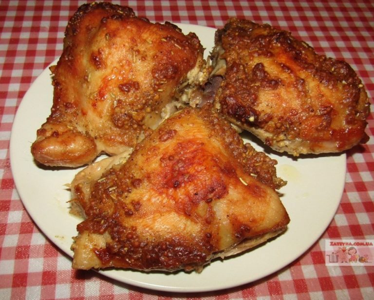 Курица, запеченная в горчичном маринаде, получается сочной и очень вкусной. Подавать в тёплом виде с гарниром или свежими овощами. Более подробный процесс приготовления смотрите на видео. Приятного аппетита!