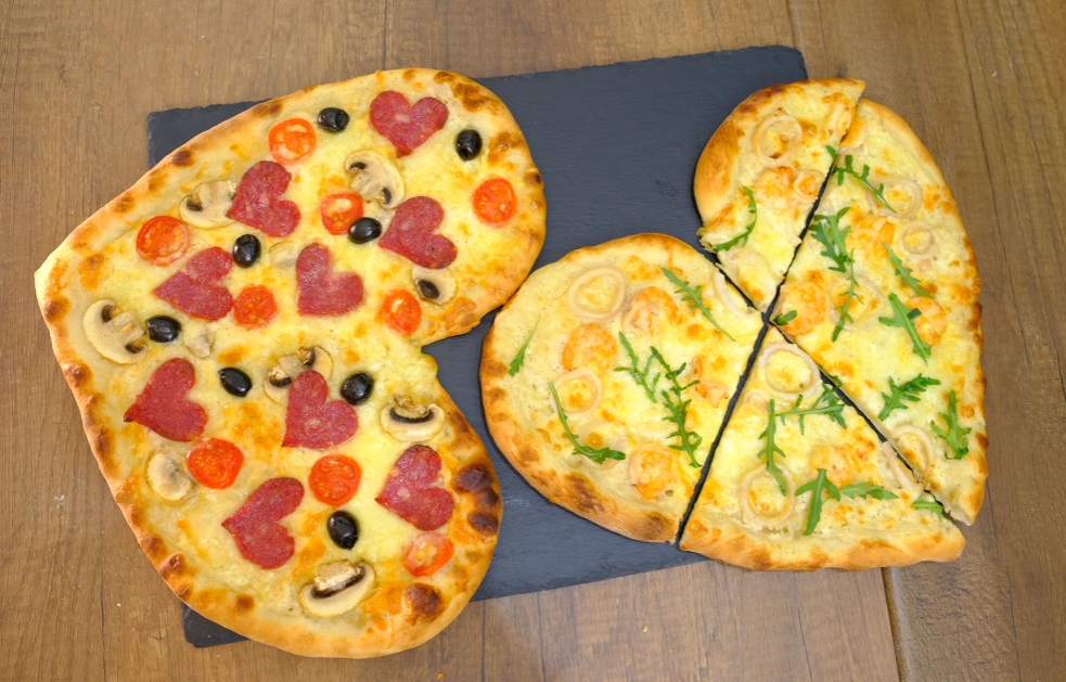 Оформленная в виде сердца пицца прекрасно подойдет для романтического ужина.