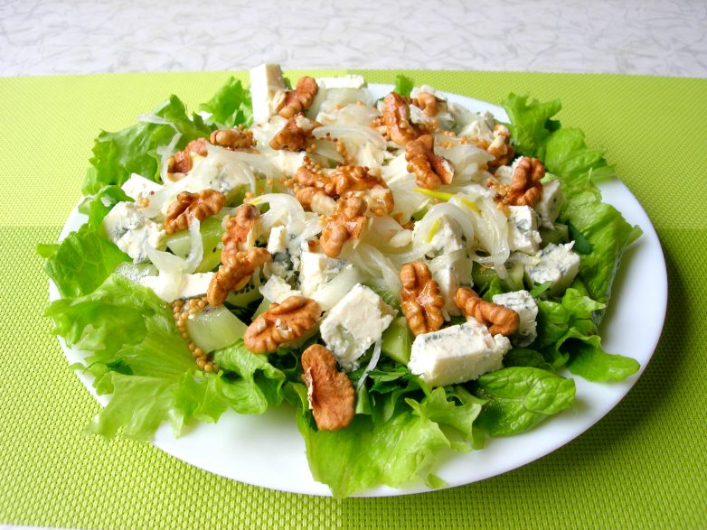 Знаю такой салат, правда, вкусный! Кстати, кто не очень «дор блю» жалует, обычная «фетакса» тоже в этом салате неплоха))))