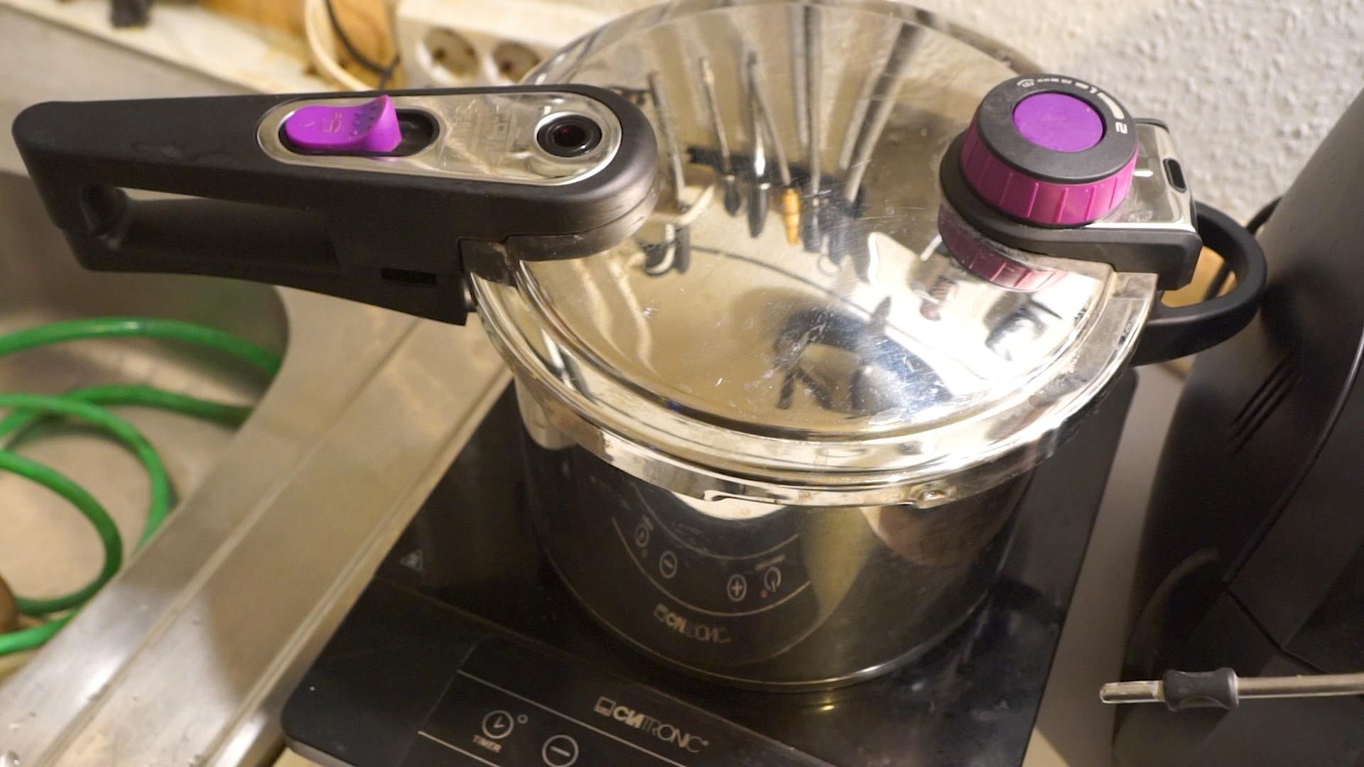 Вставляем подходящий по диаметру шланг в клапан скороварки. Самогонный аппарат готов!