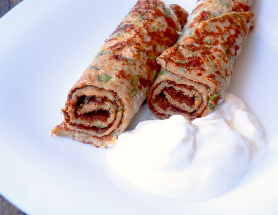 6. Эти блинчики я подаю остывшими со сметаной, горячие они кажутся немного сыроватыми.