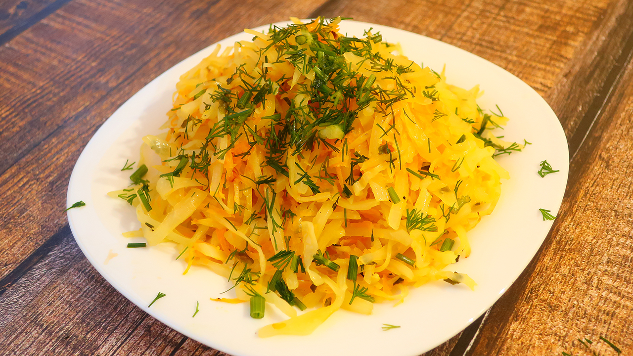 1. Капусту нарезаем тонкой соломкой.