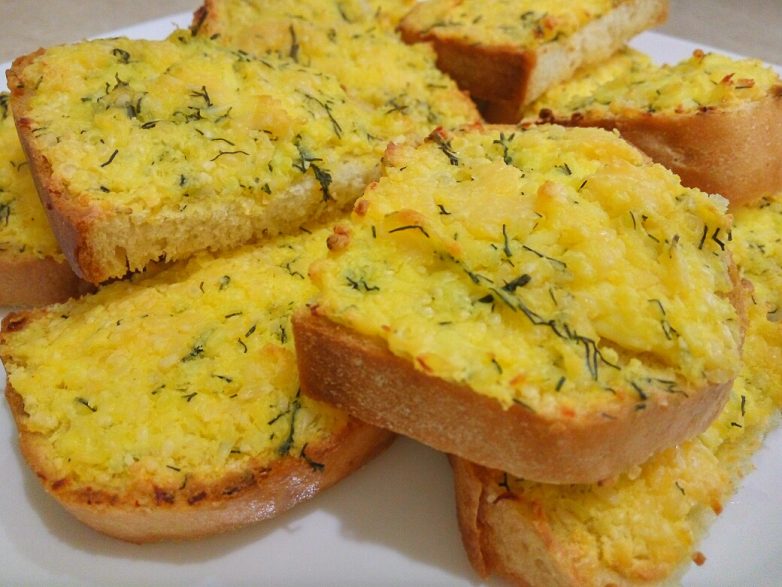 6. Нарежьте батон. На это количество ингредиентов я использую 6 ломтиков батона. Обязательно перережьте каждый ломтик пополам, так будет намного удобнее кушать, да и красивее выглядит.