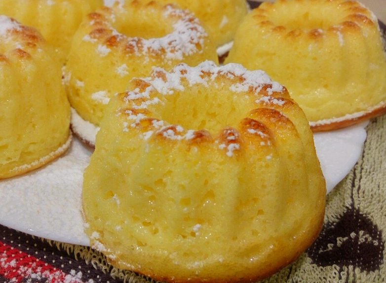 3. Формочки для выпекания смажем растительным маслом и выложим творожную смесь, примерно по 2 ст.л. Данное количество ингредиентов рассчитано на 6 формочек для кексов.