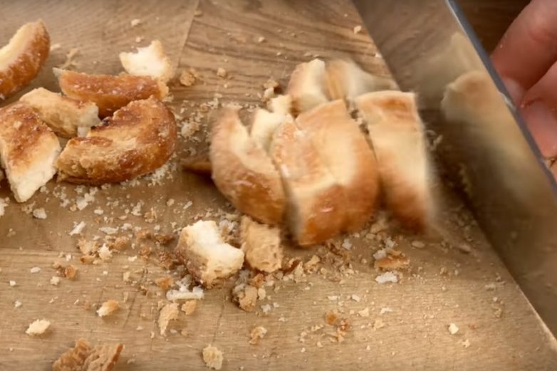 Печенье порежьте ножом на мелкие кусочки.