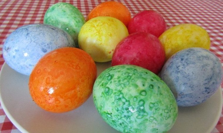 Пасхальные мраморные яйца в рисовой сечке
