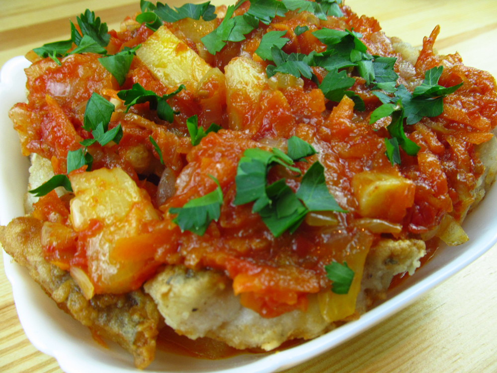 Рыба в томатном соусе с ананасами