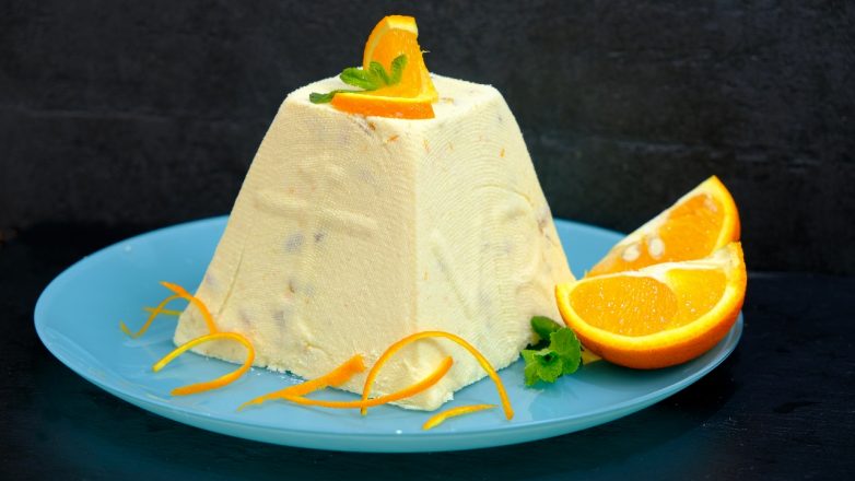 7. Пасху переложить на блюдо для подачи и украсить.