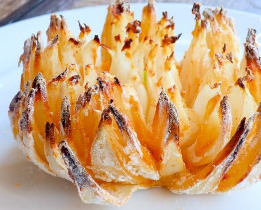 Сделаем очень красивую ароматную закуску из лука в виде цветка хризантемы) Только посмотрите какие красивые румяные лепестки с вкусным сметанным соусом!)