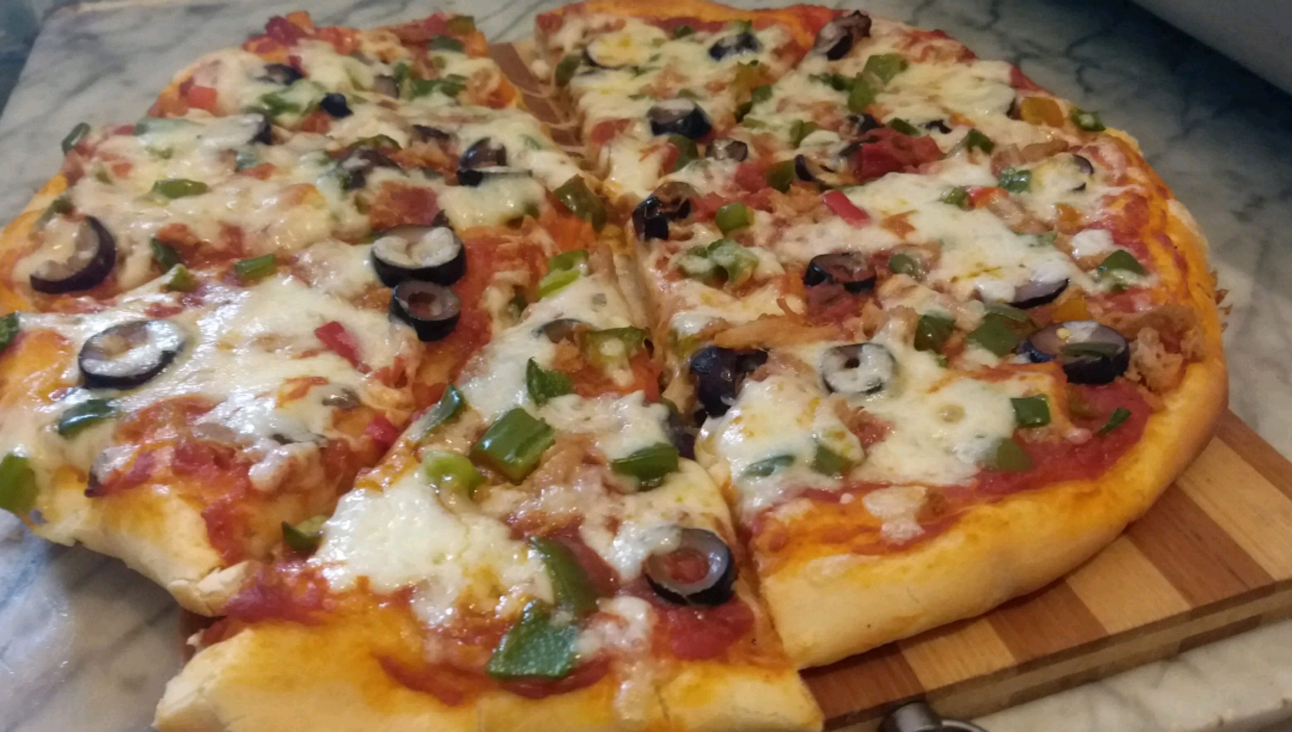 у меня: тунец консервированный, оливки, грибы, сыр