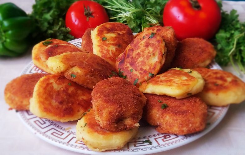 Картофель отварить в подсоленной воде. Слить воду. Добавить сливочное масло и щепотку куркумы по желанию. Сделать пюре. Охладить 10 минут. Добавить яйцо и муку. Вымешать до однородности. К фаршу добавить лук, специи и соль по вкусу, зелень по желанию. Влажными руками сформировать котлету из картофеля, вовнутрь фарш. Обвалять в муке. Можно сделать в панировке из сухарей. МУка, яйцо, панировочные сухари. Жарить на небольшом огне до румяности с обеих сторон.
