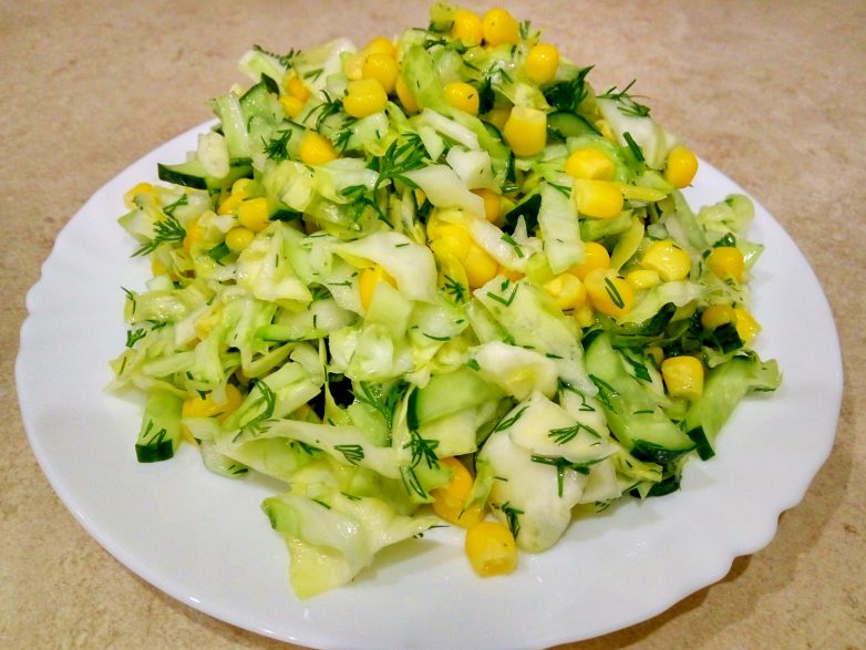 Салат с кукурузой, огурцами и капустой