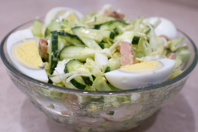 Овощной салат с печенью трески готов! Всем приятного аппетита!