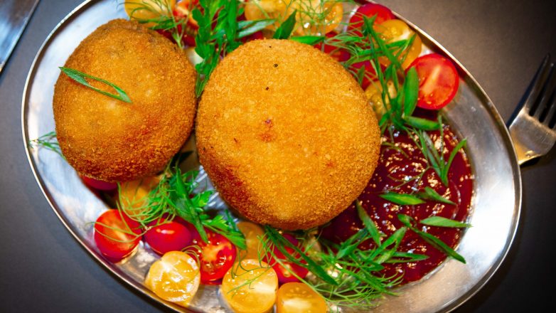 Состоит оно из мясного фарша в панировке, и приготовлено в кляре.