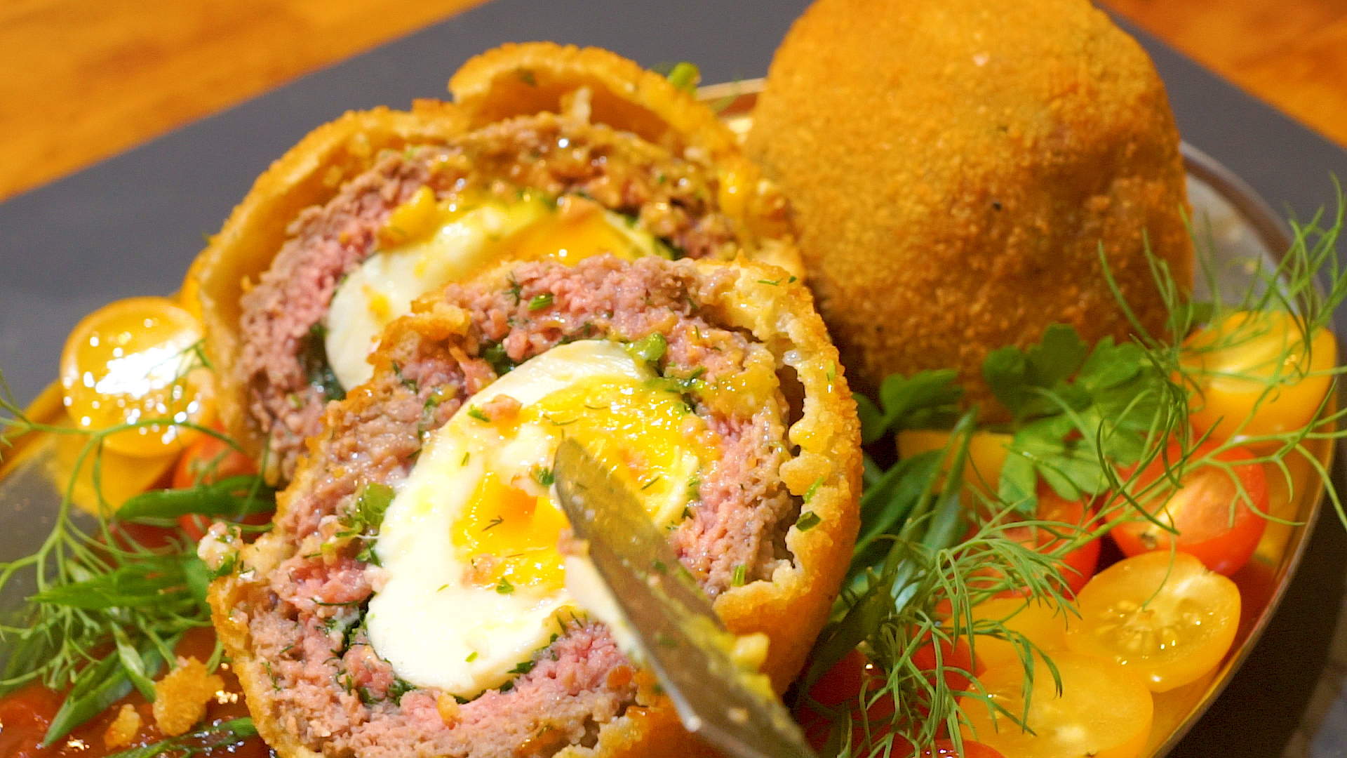 Благодаря этому мясо остается розовым и сочным. Золотистая хрустящая корочка придает нотки пикантности, а зелень и густой яичный желток, превращают в изысканное блюдо.