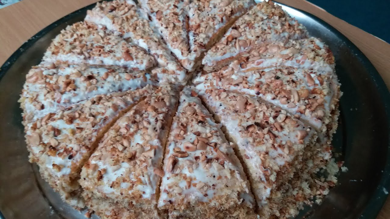 Перемазываю каждый корж и посыпаю измельченной крошкой вместе с орехами.