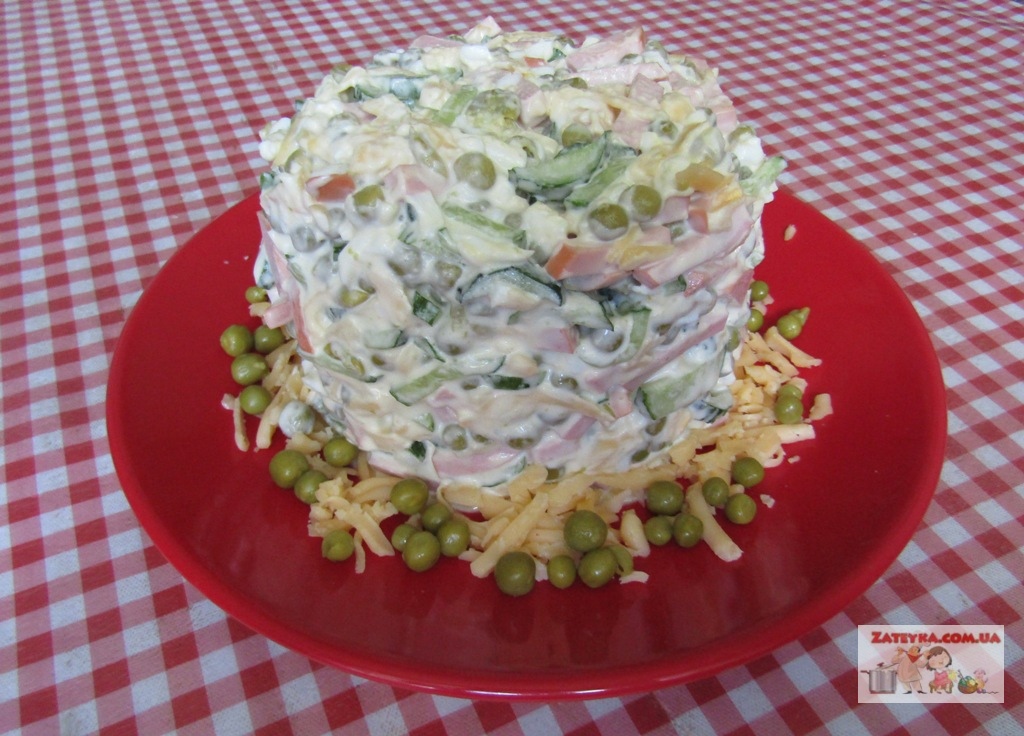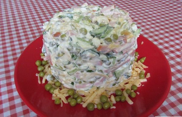 Название «Салат на скорую руку» говорит само за себя. Салат готовится очень быстро и также быстро съедается. Прекрасно смотрится как на праздничном, так и на обычном обеденном столе.