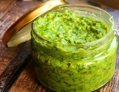 4. Перекладываем соус в баночку и сверху поливаем оливковым маслом. Хранить в холодильнике можно пару дней. Есть соус песто можно просто намазывая на хлеб, желательно на домашний) с макаронами, или сделать закуску с помидорами и моцареллой.