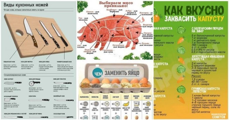 Для этого вот вам куча новых шпаргалок, касающихся кухни, готовки и всего прочего околокухонного.