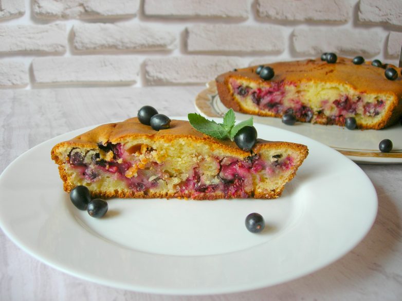 Мягкий, пышный и сочный пирог на сметане со смородиной