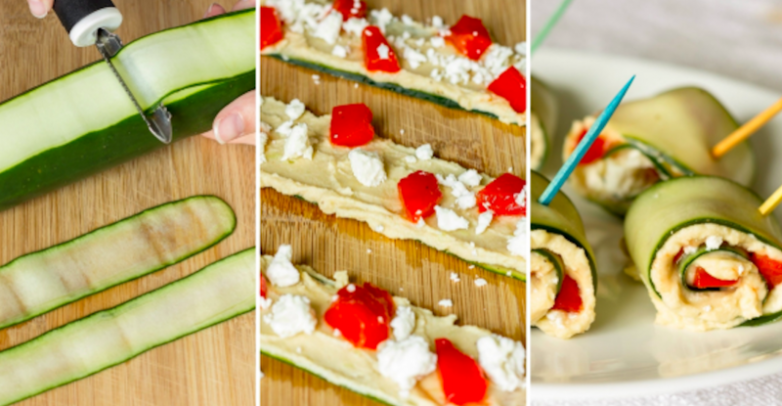 Несмотря на то, что речь сейчас пойдет о роллах, морские водоросли нори для них не понадобятся. Роллами они называются лишь потому, что они круглые. На самом же деле это обычный рулет, начинка заворачивается в огурец, салат или лаваш. Для блюда, как на картинке, понадобятся большой огурец, паштет, мягкий сыр или густой соус, кусочки сочных овощей и зубочистка. Для начинки в лаваше также можно использовать тушеные овощи, а полученный рулет нарезать порциями.