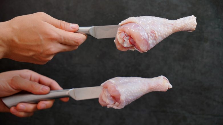 2. Куриные ножки протереть от маринада бумажными полотенцами. Обжарить ножки со всех сторон до золотистой корочки в течение 25 минут.