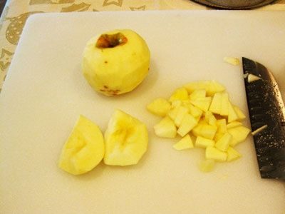 – Если у вас есть домашнее яблочное пюре, вместо свежих яблок можете использовать его, вполне хватит 130 – 150 грамм.