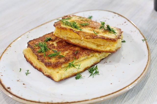 Разогреваем сковороду, наливаем растительное масло. Быстро окунаем в яйцо бутерброд и выкладываем на хорошо разогретую сковороду. В процессе жарки прижимаю лопаткой к сковороде бутерброд, чтобы краешки схватились друг с другом. Обжариваем с двух сторон до золотистого цвета.