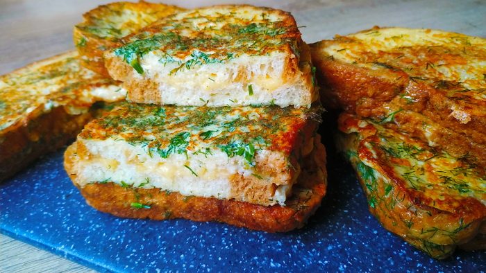 Завтрак - бомба из обычных продуктов! Вкуснейшие сырные греночки на сковороде