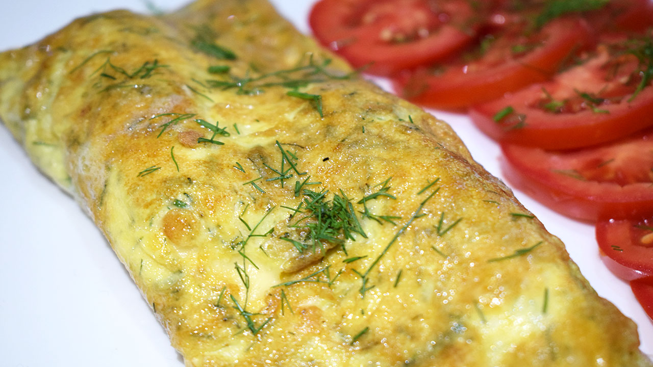 5. Омлет переворачиваю на другую сторону и обжариваю тоже.
