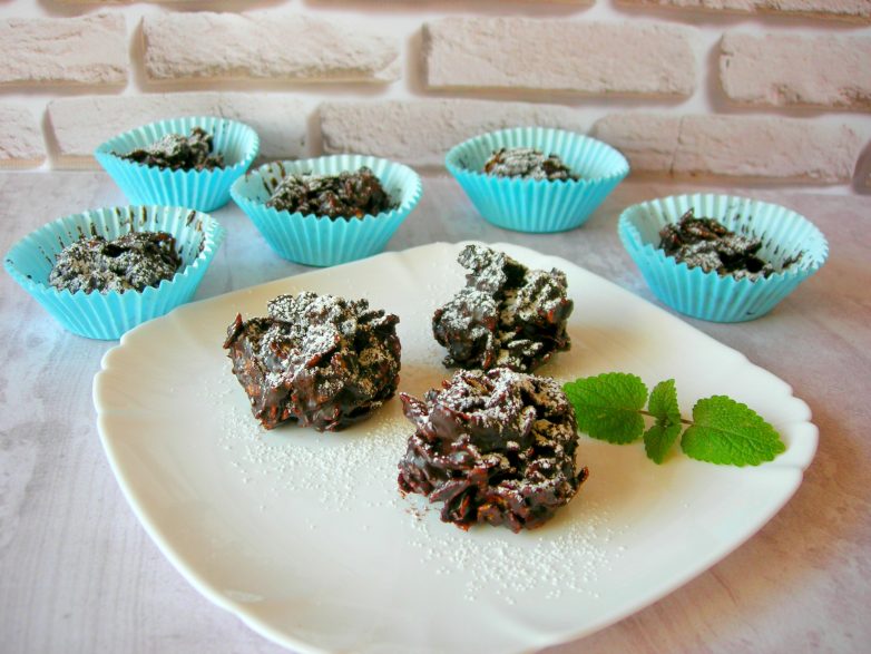 Пропорции десерта можно менять на свое усмотрение: делать его более шоколадным или более хрустящим. Сразу предупреждаю, хлопья не успевают размокнуть и не превращаются в кашу.