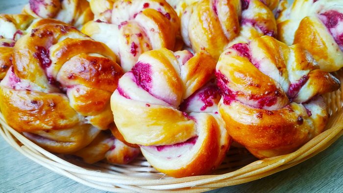 Всем привет! Сегодня готовлю сдобные, пышные и мягкие булочки-завитушки с малиной.