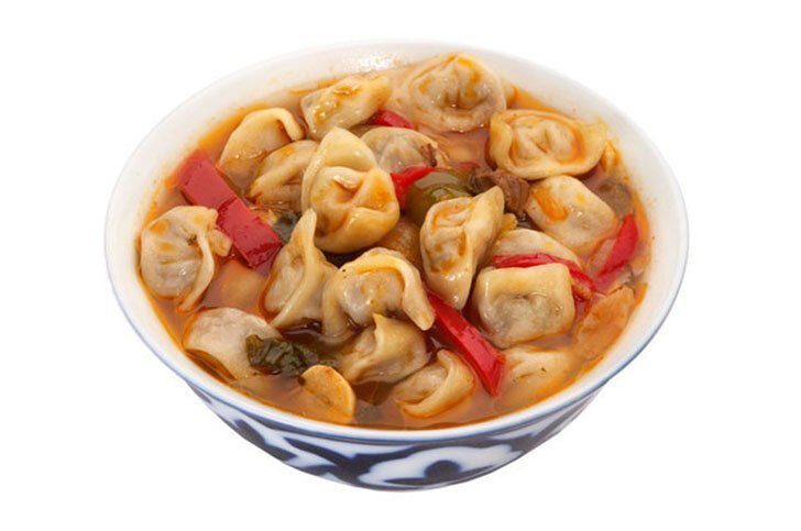 Чучвара — это суп с маленькими пельменями, который обычно подается с сузьмой (кисломолочный продукт типа сметаны) и содержит черный перец, лук, томатную пасту и болгарский перец.