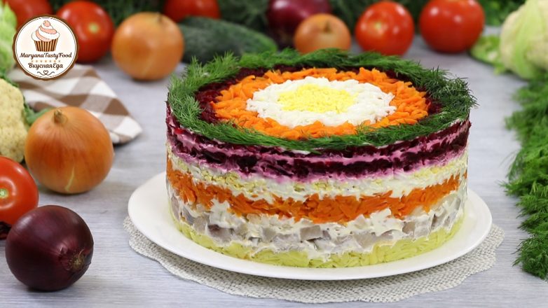 Слоёный салат Селёдка под шубой" готов. Приятного аппетита Вам и Вашим гостям!