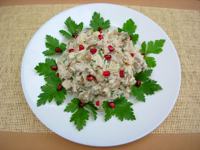 Предлагаю вам чудесный салат на новогодний праздничный стол. Нашла этот рецепт в своей старой кулинарной книге и обратила внимание на название — «Прекрасная леди». Первая мысль была, что салат с таким красивым названием не может быть не вкусным. Приготовила, очень понравился.