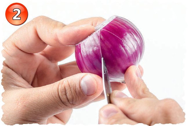 1. Отрезаем у луковицы верхушку и снимаем сухие чешуйки.