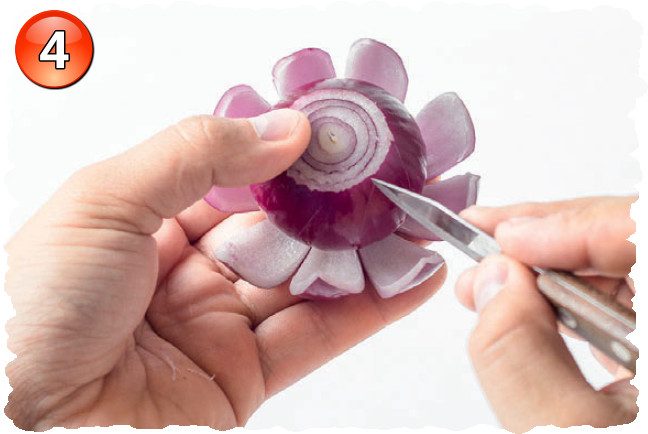Вырезаем цветок лотоса из красного репчатого лука. Мастер-класс по карвингу