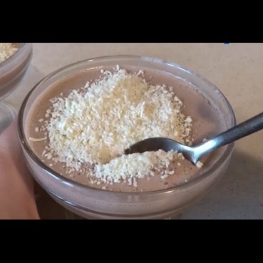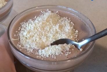 Желатин залить молоком и оставить набухнуть. В ряженку добавить какао, сахар если хотите и взбить блендером до однородности, чтобы появились пузырьки. Набухший желатин растопить в микроволновке и добавить в ряженку, еще рах хорошо взбить. Разлить массу в креманки, накрыть пищевой пленкой и убрать в холодильник на 2 часа. По истечению времени достать десерт из холодильника и украсить шоколадом.