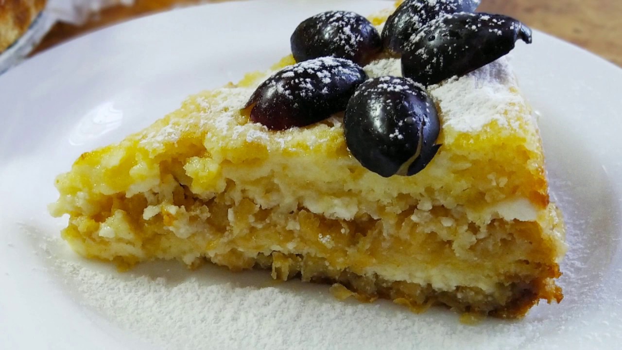 Пирог с яблоками и творогом без замеса теста