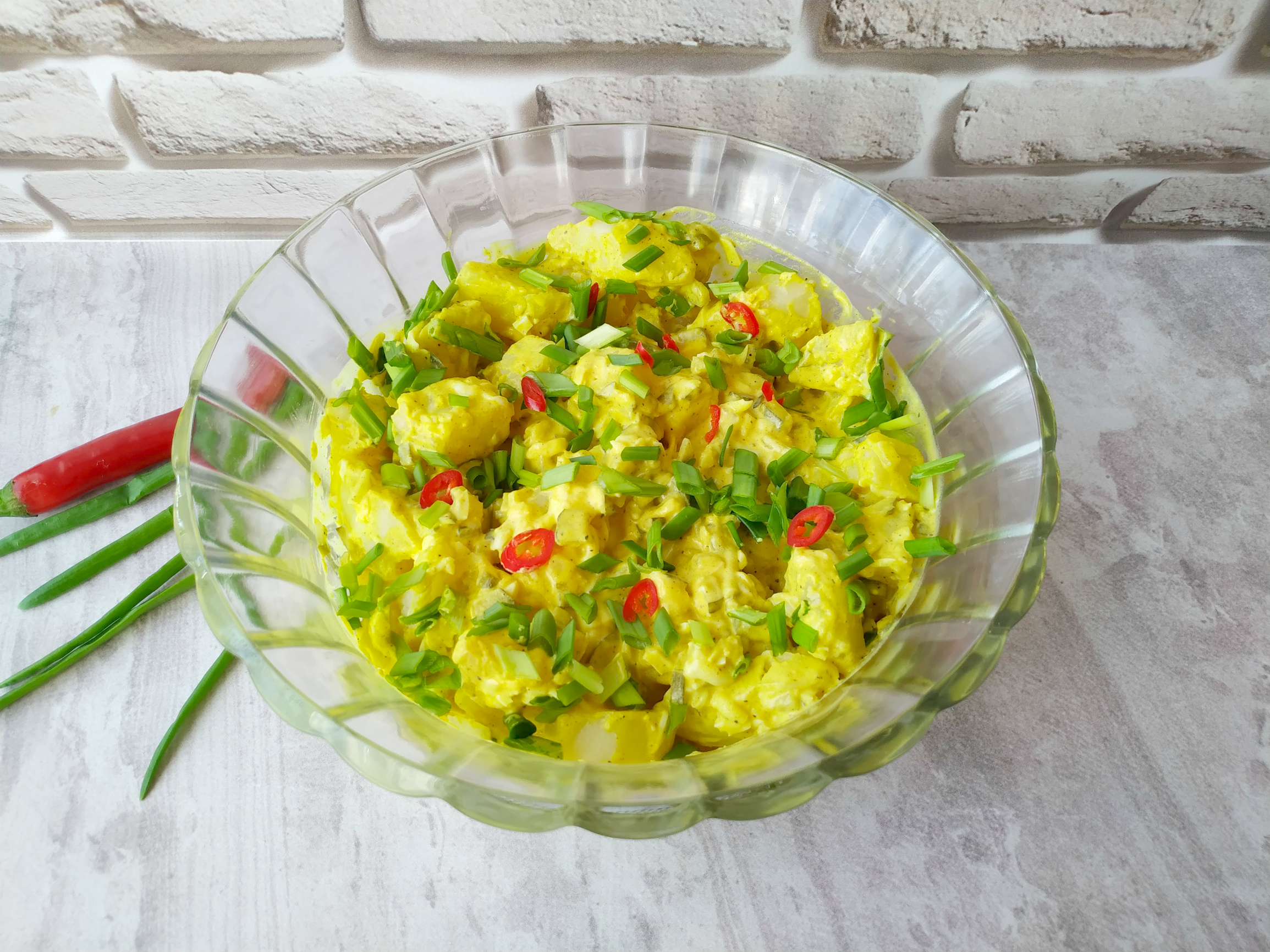 Сегодня готовлю датский картофельный салат с соусом «Ремулад». Готовится салат просто, получается вкусно. Может выступать как самостоятельным блюдом на обед или ужин, так и гарниром к любому мясному блюду.