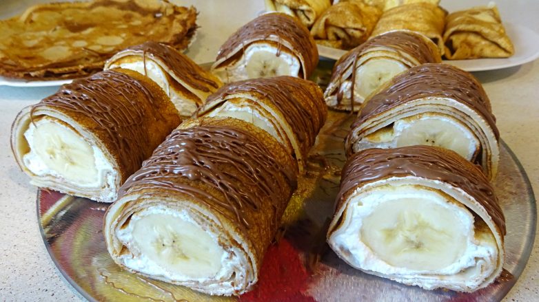Рулетики из полезных блинчиков с творожно-банановым кремом