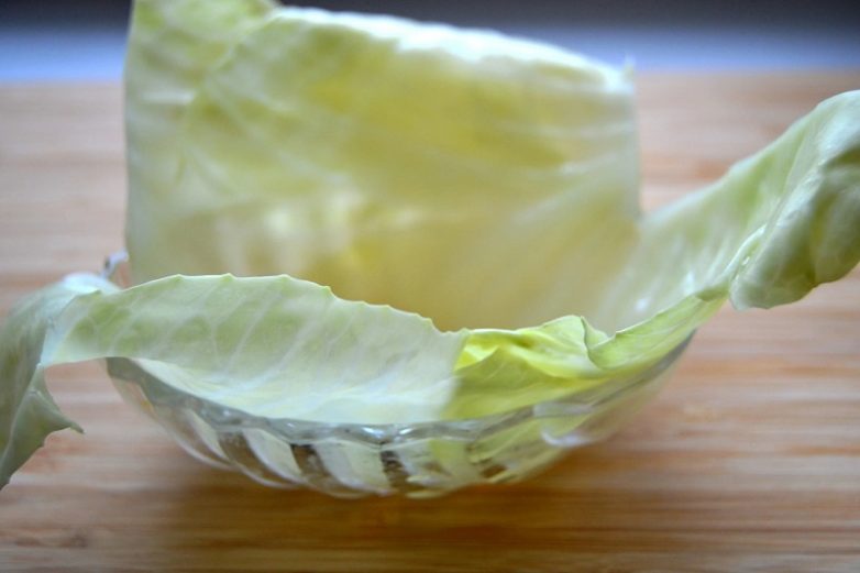 Есть еще один способ сделать капустные листья мягче — заморозить. С вечера положить в морозильную камеру, с утра достать. После оттаивания капуста для голубцов станет похожей на вареную.