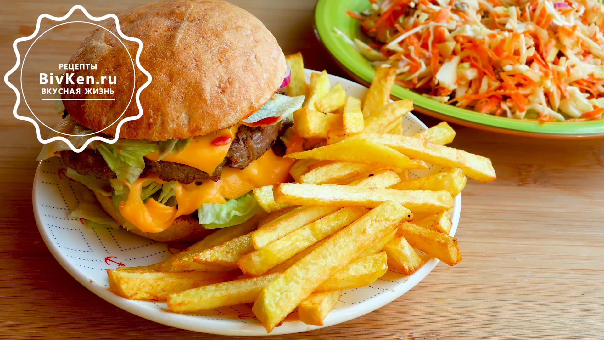 Сочный домашний бургер + салатик и картошка