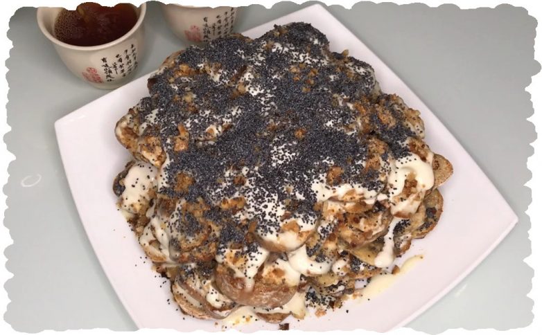 6. Промажем весь торт сметанным кремом и посыпаем маком.